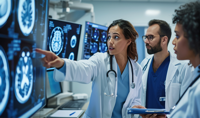 Radiologists interpret stroke brain scan results immediately without delay. Results reach the emergency team within minutes of imaging completion.